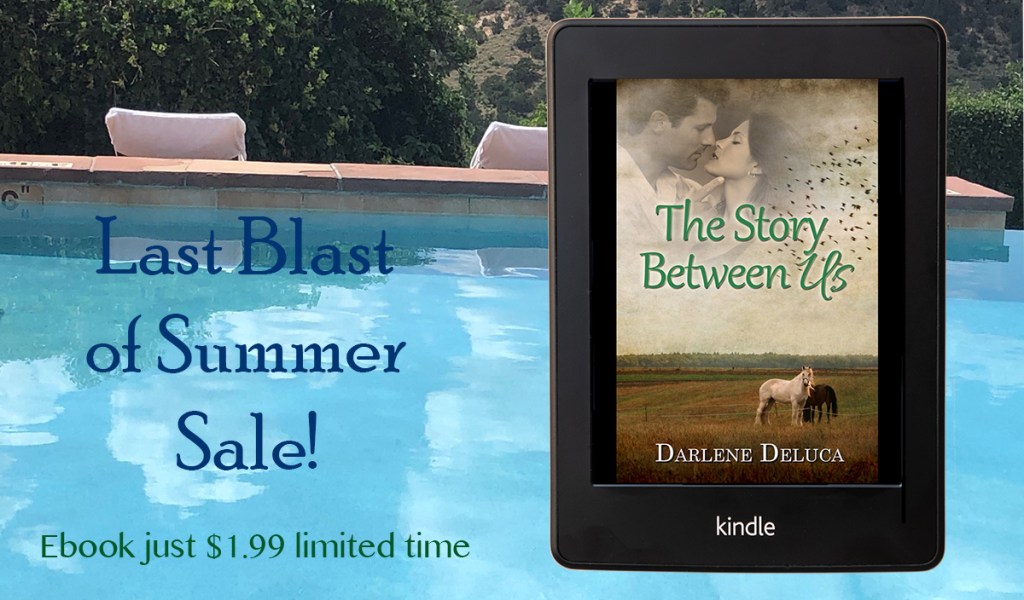 But I’m not giving in just yet! I’m clinging to the sunny days as long as I can — lunches with friends, a few hours at the pool as I can get them, and a book sale! In honor of the one-year anniversary of my sweet romance “The Story Between Us,” my publisher has put the ebook on sale for just $1.99. Grab it now, then settle in with a cold beverage in your favorite reading spot and enjoy another summer read!